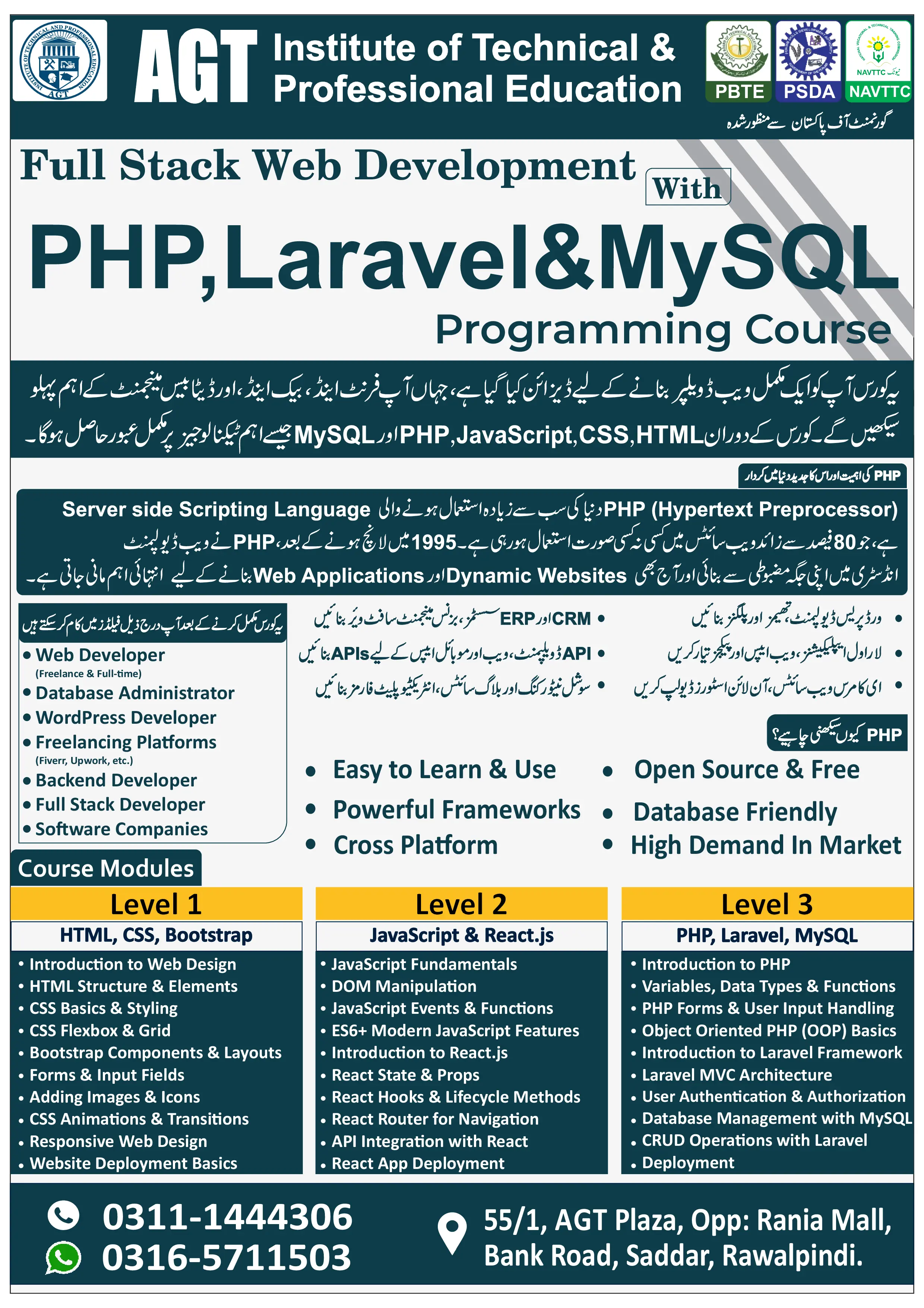Web Development Course (Using PHP, Laravel with MYSQL)
